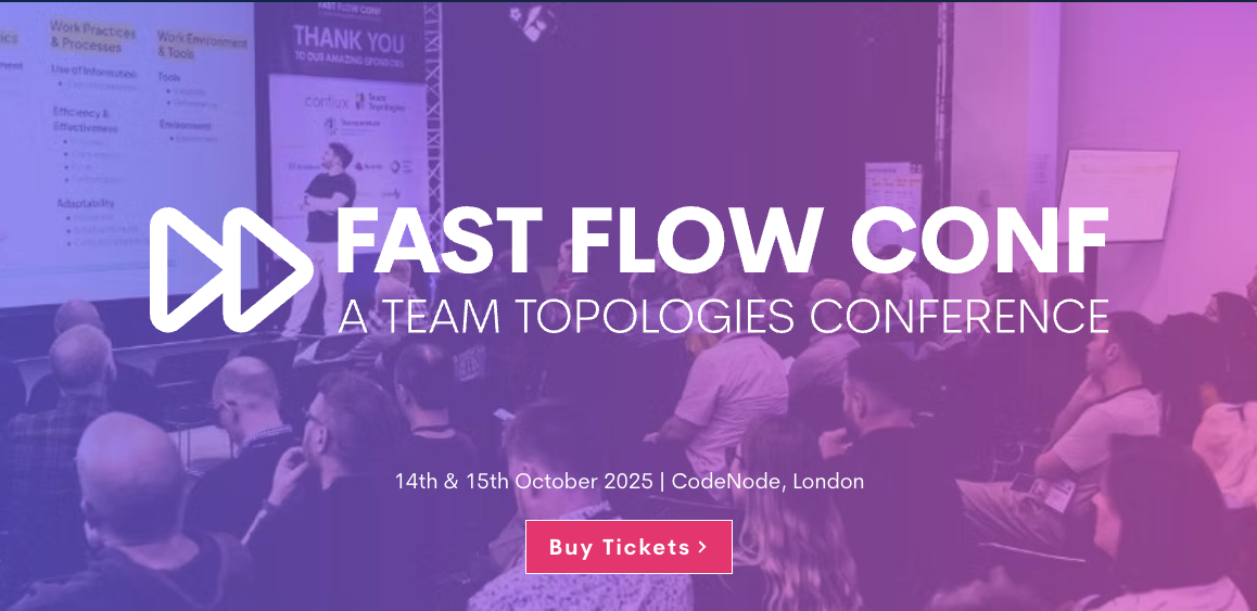 FastFlowConf focuses on the approach and methodologies described in Team Topologies, by Matthew Skelton and Manuel Pais.