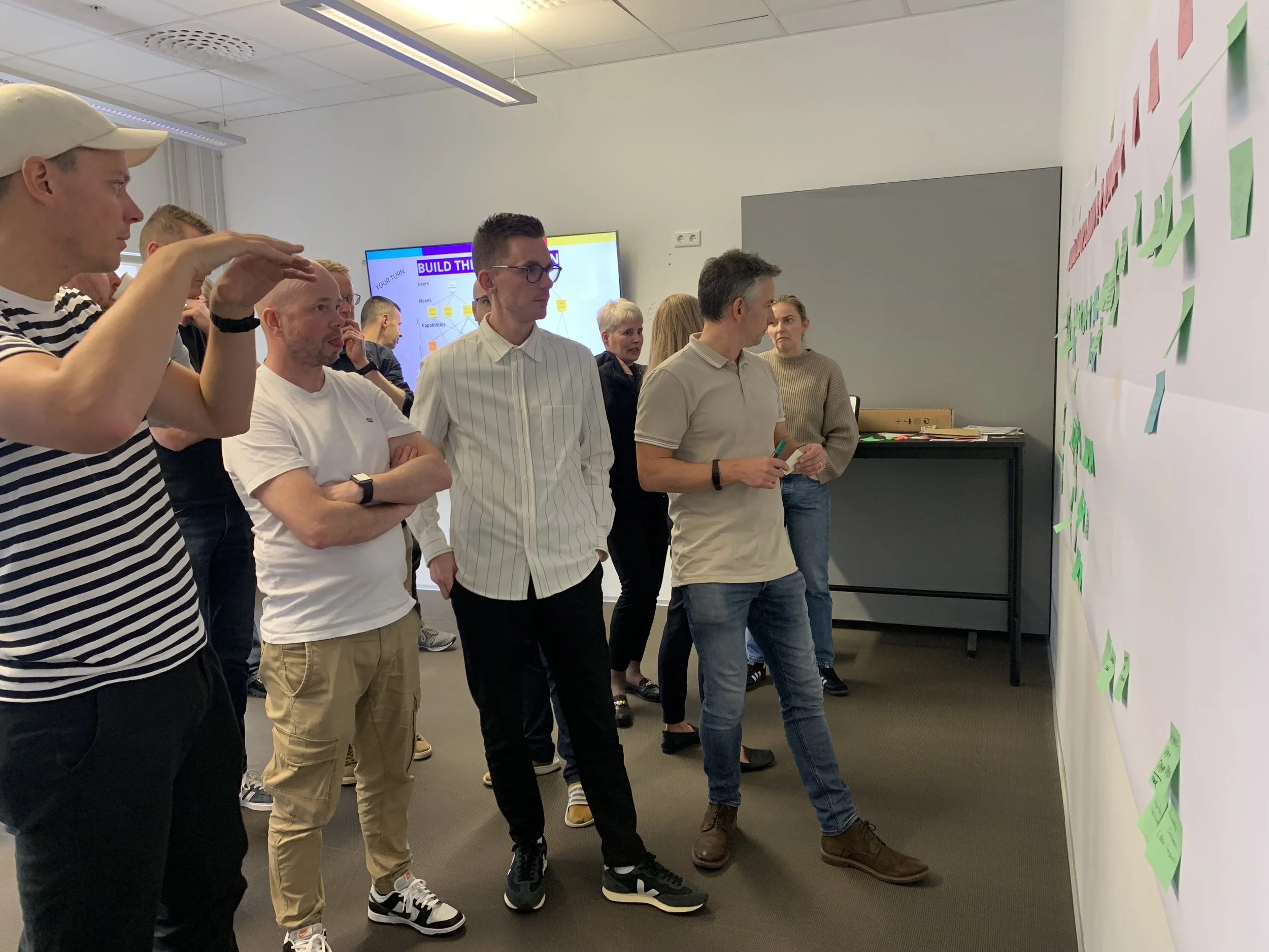 The onsite workshop kicked off with a deliberate effort to foster trust and openness. Around forty people, double the expected turnout - primarily the Digital & Data department but also representatives from sales, marketing and finance - joined the first sessions, each bringing their unique perspectives and challenges. We set the stage by defining desired outcomes, giving people the opportunity to vent about current obstacles but also align on shared aspirations.